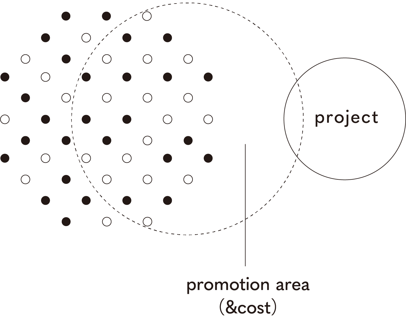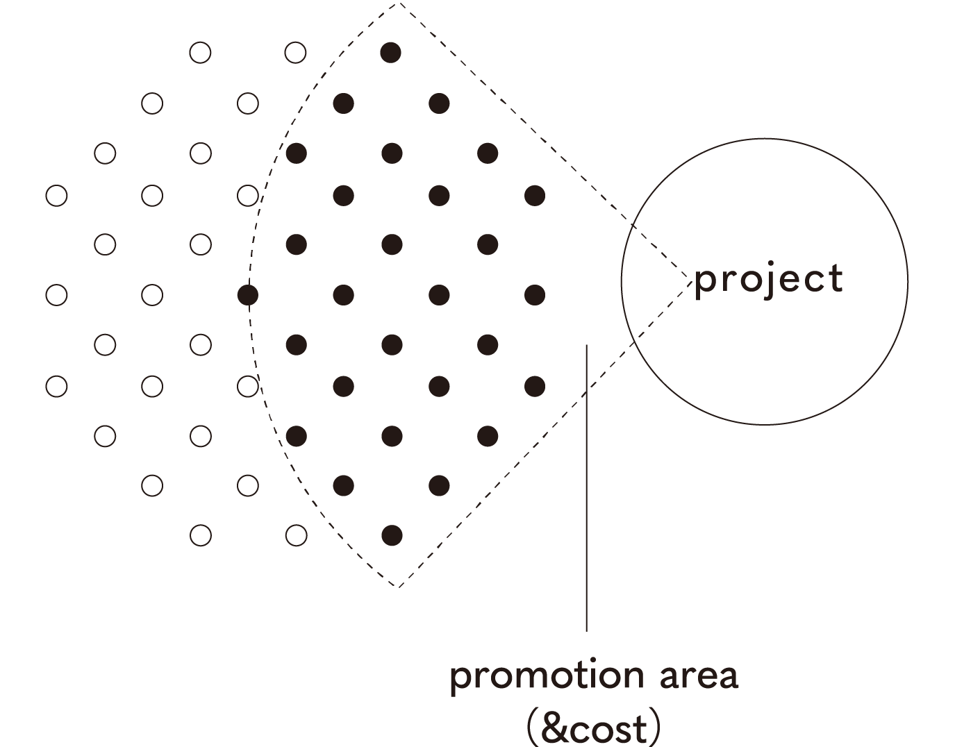 - フライヤー、DM、ホームページ、リスティング広告などプロモーション領域は広いですが、アプローチが散漫になるためコアターゲットへリーチがしずらく費用対効果は高くありません。